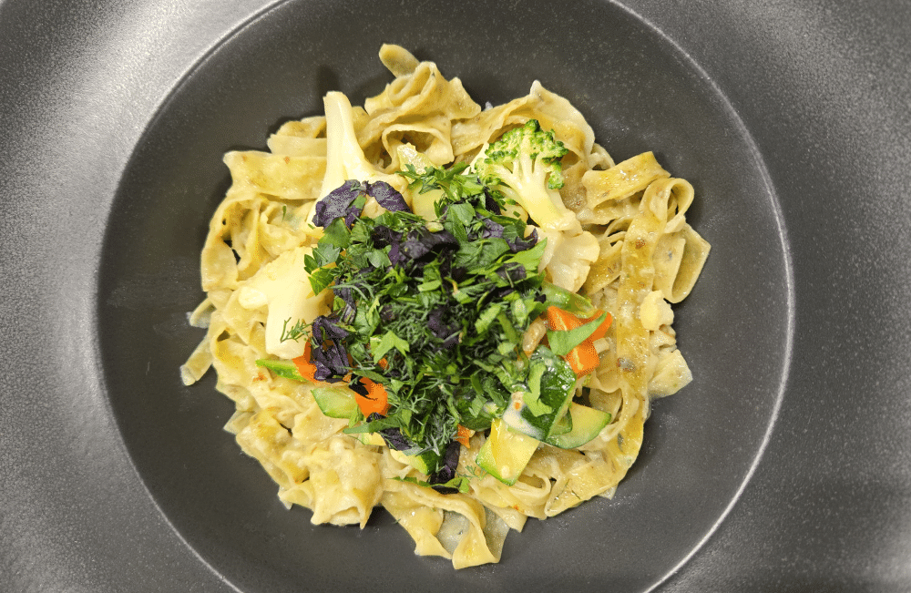 Чечевичные феттучине с овощами в кокосовом молоке
